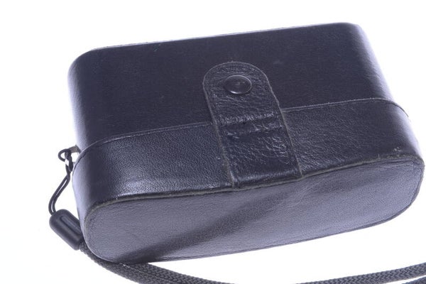 Original camera makers leather ready case is in good condition. It shows some signs of prior use.