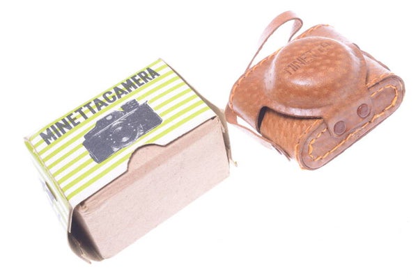 HIT TYPE MINETTA CAMERA MINIATURE ORIGINAL LEATHER CASE & BOX *NO CAMERA*