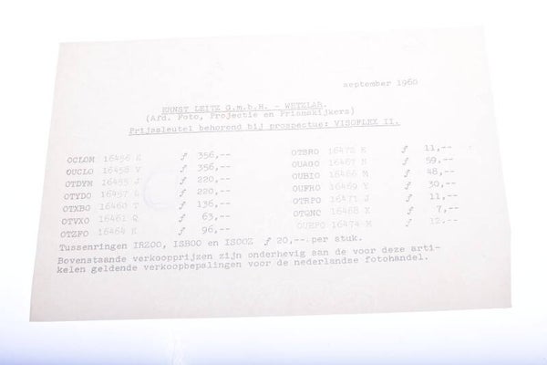 LOT OF LEICA ORIGINAL 1960 PRICE LISTS DUTCH 123