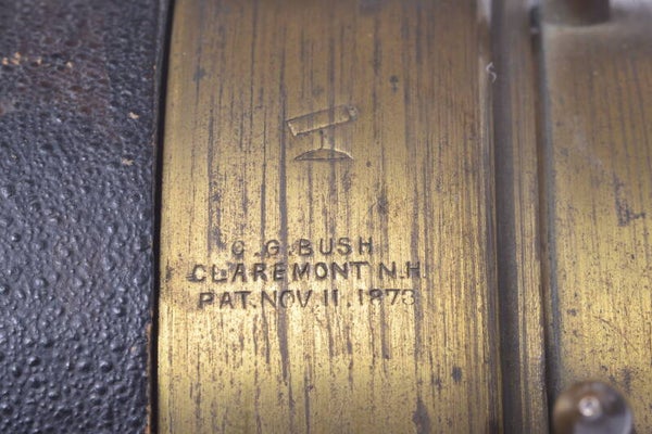 Two small brass rods are missing. Original engraved C.G. Bush and the patent number. Very rare find and a very nice piece.