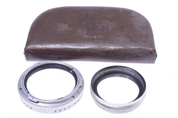 Note this set has one lens with a bayonet 1, RI and one with a 28.5mm diameter push on. Only Rolleiflex 4x4 Sports and the Rolleicord II type 2 & 3 are cameras that only have a 1 bayonet filter attachment on the taking lens. Rare close-up set.