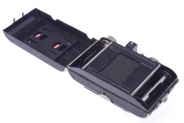 Blinds are light leak free. Note, this is a Feet distance scale version and has ‘Germany’ engraved on top of the film wind knob.
