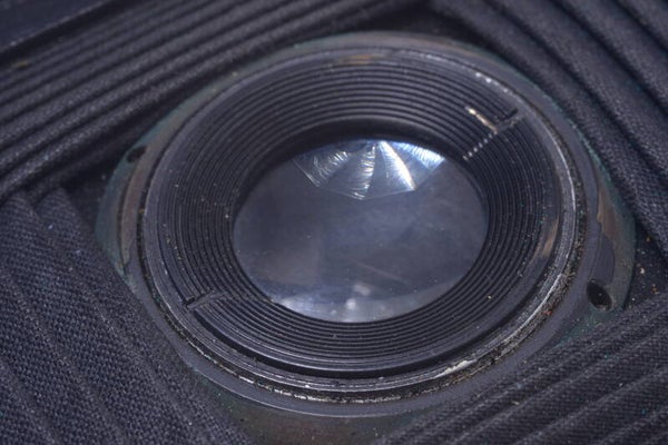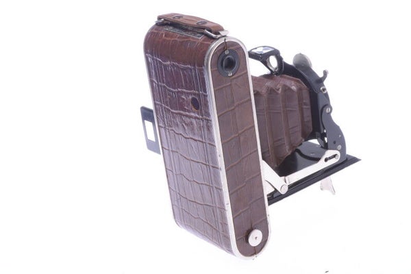 Meter distance lens scale. Last model with 1 up to 7 second self timer, scarce luxus model, 6x9cm format.
