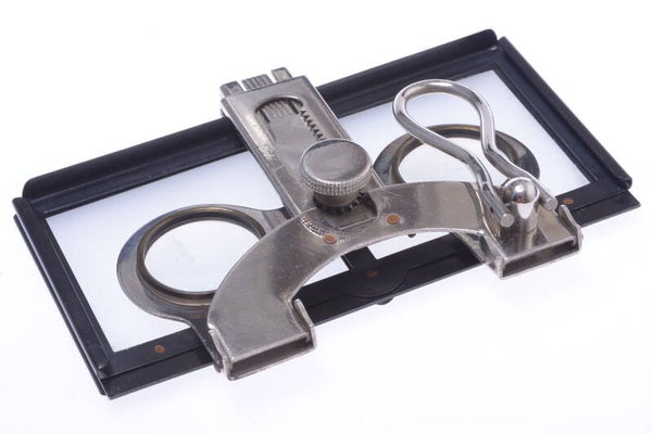 The lens elements both in very good condition, clean and bright. No cleaning marks, no haze, no fungus, no separation, no scratches. Shows no dust particles inside. This model is for transparent glass images or cardboard cards. Images size that fit are 60x130mm. Focus moves smooth. Folds nicely and compact.