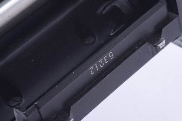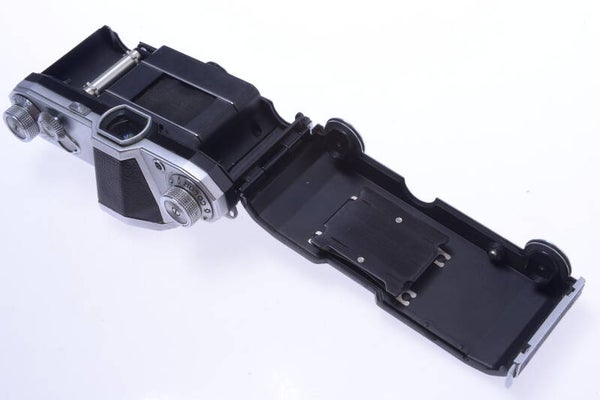 Overall the camera shows some signs of prior use and is in good condition. Shows some scuffs, minor scratches, no dings, no dents, shows some handling wear. Some wear at the cover. Focus screen, mirror and prism(shows minor brown spots) in good condition. Shows minor dust. Film winds on smooth. Counter works.