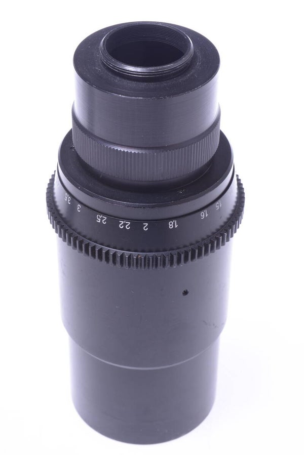 Note, it comes with c-mount adapter and screw in front aperture discs. No m42 adapter.
