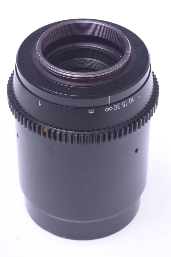 Lens shows some signs of prior use and is overall in very good condition. Shows some scuffing, minor tiny scratches, no dings, no indentations. The elements are in good condition. No cleaning marks, few small scuffs, no scratches, no haze inside, no fungus, no separation. Shows no dust particles inside. Aperture discs show no wear and are clean, still in the original plastic bags. Focus turns very smooth. Lens comes with original front cap.
