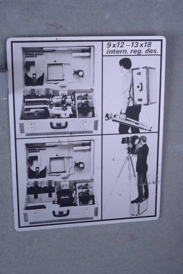Original Sinar case. Used for all models Norma, F, F1 and P in sizes 4x5/9x12 and 5x7/13x18. For quite a few accessories. Comes without keys. Hinges perfectly and closes and locks for the journey perfectly. All rivets in very good condition.