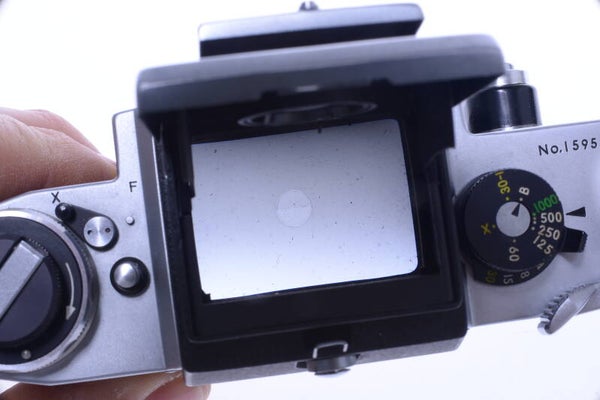 Overall and the rest of the camera shows really minor signs of prior use and is in very good, minty condition. Shows no scuffs, no scratches, no dings, no dents, cover in very good condition and shows no wear. Focus screen, mirror and prism in very good, bright and clean condition. A very nice conditioned, ready for use camera.