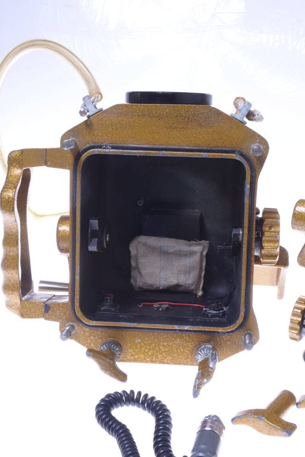 Camera works and all shutter speed are all accurate. Also the longer speeds are accurate. Light meter does not respond. On the camera small adapter rods are installed to connect to the housing. It comes with a close-up system with the original macro lenses installed and the system works perfectly. See pictures for details.