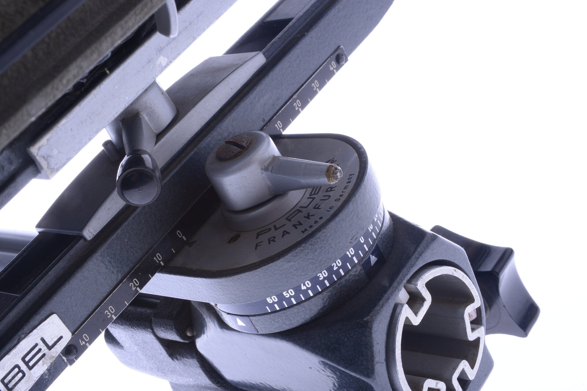 Comes with base rail, light leak free original tapered bellows, original tripod clamp, Sinar Norma 5x7”, 13x18cm ground glass holder and ground glass and Plaubel Peco Profia front and rear stands.
