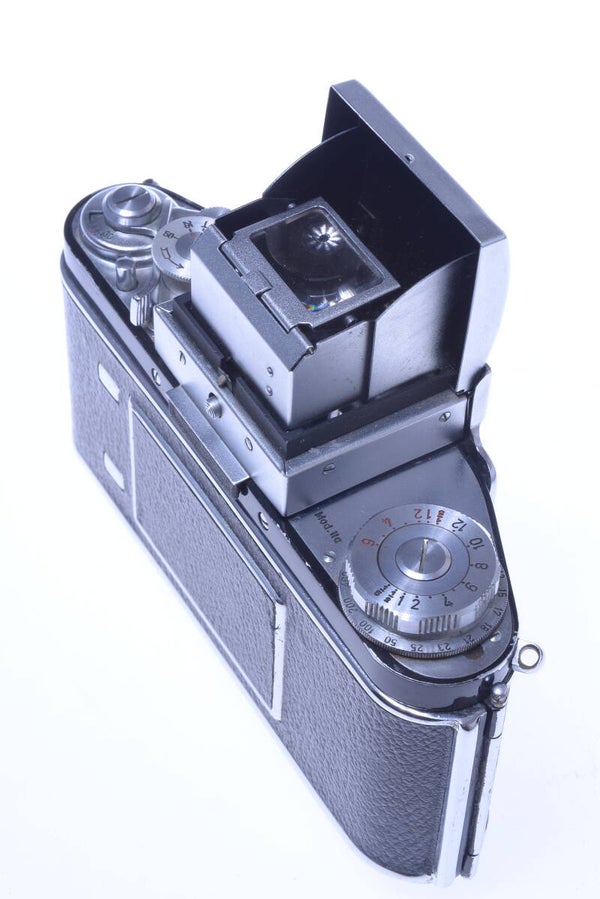 Overall the camera shows some signs of prior use and is in pretty good condition. Shows minor scuffs, few small scratches, no dings, no dents, minor paint rub off, cover shows no wear, small spot of chrome loss here and there. Focus screen in very good, bright condition, shows some dust. Camera is ready for use.