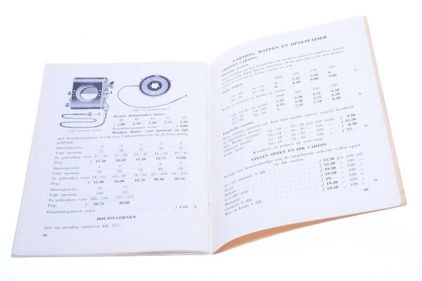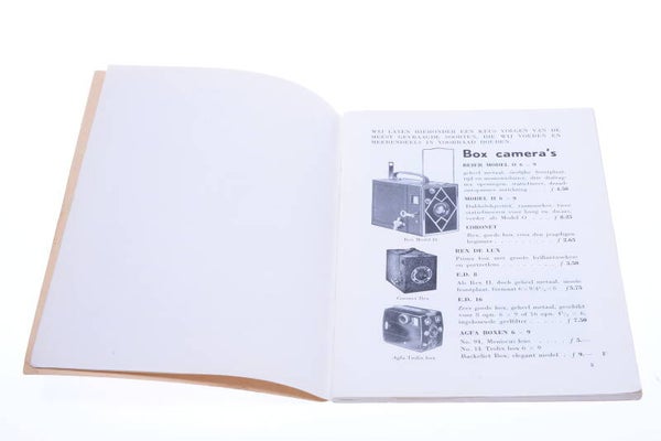 Clean, no tears, no discoloring. Very nice catalogue on cameras brands were available in the Netherlands at that time. Prices in Dutch Guilders.