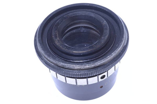 Lens shows minor signs of prior use and is overall in very good condition. Barrel shows minor small scratches, no scuffs, no dings, no indentations, no paint rub off. The elements are overall in very good condition. Elements show no scuffs, no scratches, no haze, no fungus, no cleaning marks, no separation. Shows no dust particles inside. Aperture moves smooth, blades show minor wear, no oil. Lens comes without caps. The lens has a 50mm diameter screw thread. Lens comes with 64mm screw thread diameter adapter.