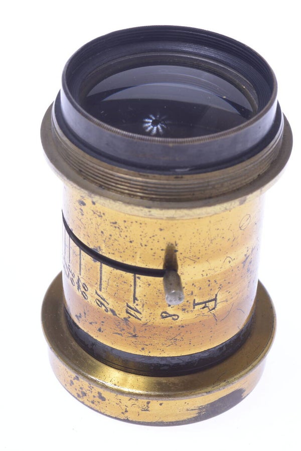 ANTIQUE BRASS LENS ‘190MM’ f/8 FITS 4x5” FORMAT CAMERA *NICE*