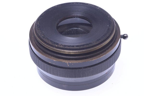 Lens shows signs of prior use and is overall in good condition. Barrel shows some scratches, some scuffs, no dings, no indentations and some paint rub off. The elements are overall in very good condition. Elements show no scratches, no haze, no fungus, no cleaning marks, no separation. Shows no dust particles inside. Aperture moves smooth, blades show some wear, minor oil. Lens comes with not original wooden case and without caps. The lens has a 53mm diameter screw thread. Lens comes without flange.