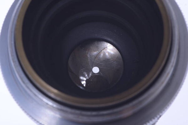 Lens shows some signs of prior use and is overall in very good condition as well. Shows minor scuffs, no scratches, no dings, no indentations, really minor paint rub off, some discoloring of the aluminum. Aperture setting moves very smooth. The elements are in very good condition. Shows no cleaning marks, no scratches, no haze, no fungus, no separation. At the very very edge of the rear element it shows some grime. Shows no dust particles inside. Aperture blades show some wear and are clean. Focus turns smooth. Comes with original leather case.