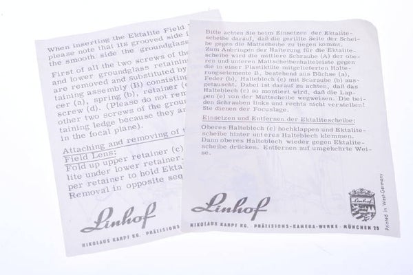 Comes with original Linhof instructions in English and German. Comes with original complete fasteners set and 6x9cm frame insert.