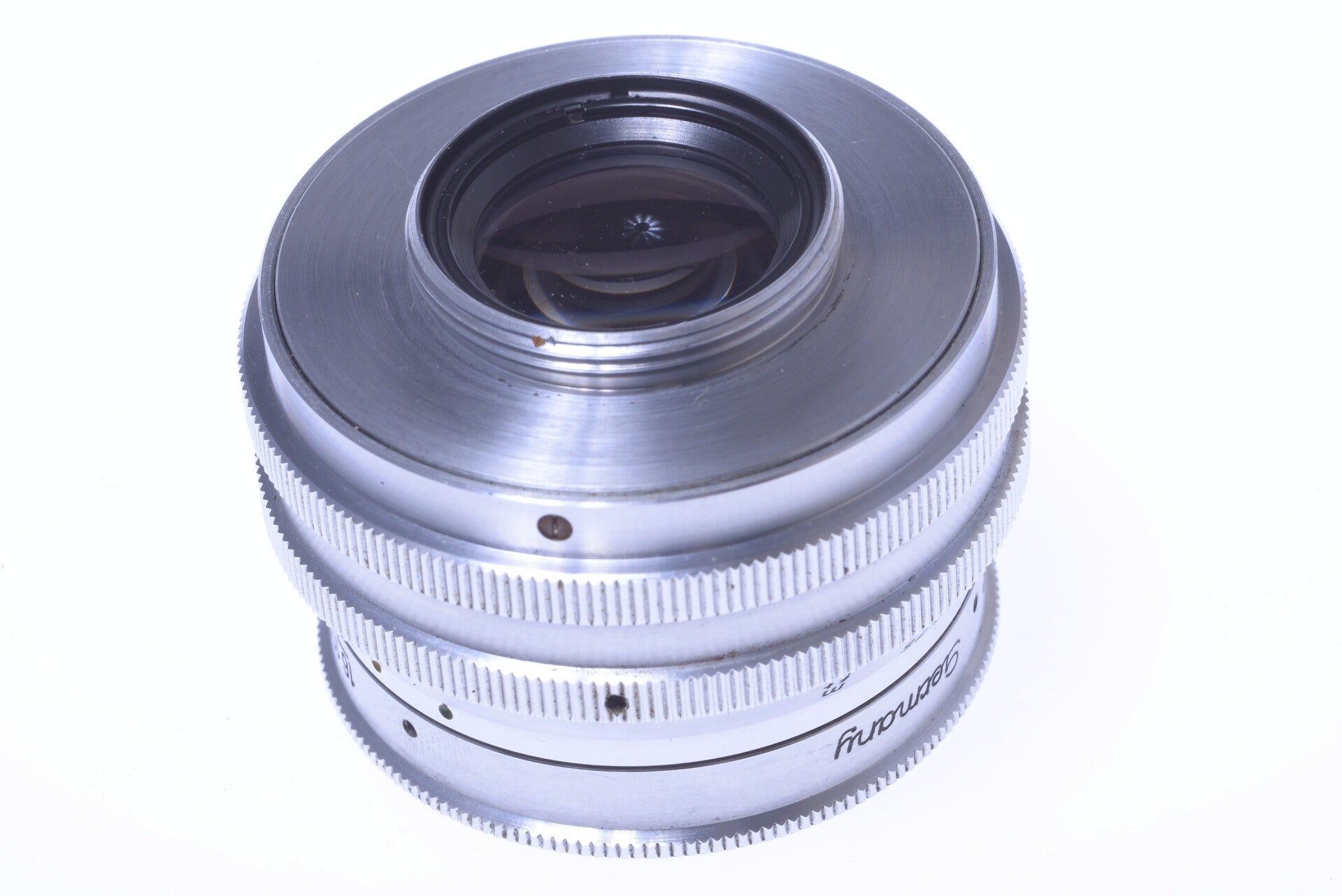 Very nice original heavy chromed brass lens. 15 blades aperture. Scarce model lens. Feet and Meter scaled model.