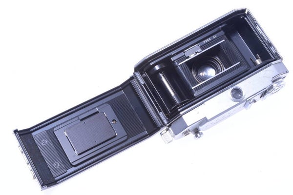 Overall and the rest of the camera shows some signs of prior use and is overall in very good condition. Shows really minor scuffs, no scratches, no indentations, no dings, no dents, shows no paint rub off, cover shows no wear. Shows some chrome rub off. Bellows is light leak free. Counter works. Speed setting ring moves smooth.