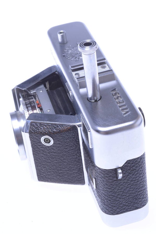 The lens elements are overall in very good condition. Minor cleaning marks, no scratches, no haze, no fungus, no separation. Shows no dust particles inside. Aperture blades show no wear and are clean. Aperture open and close perfectly and smooth. Focus moves smooth. Camera lens unit folds open perfectly and smooth. Film winds on smooth.