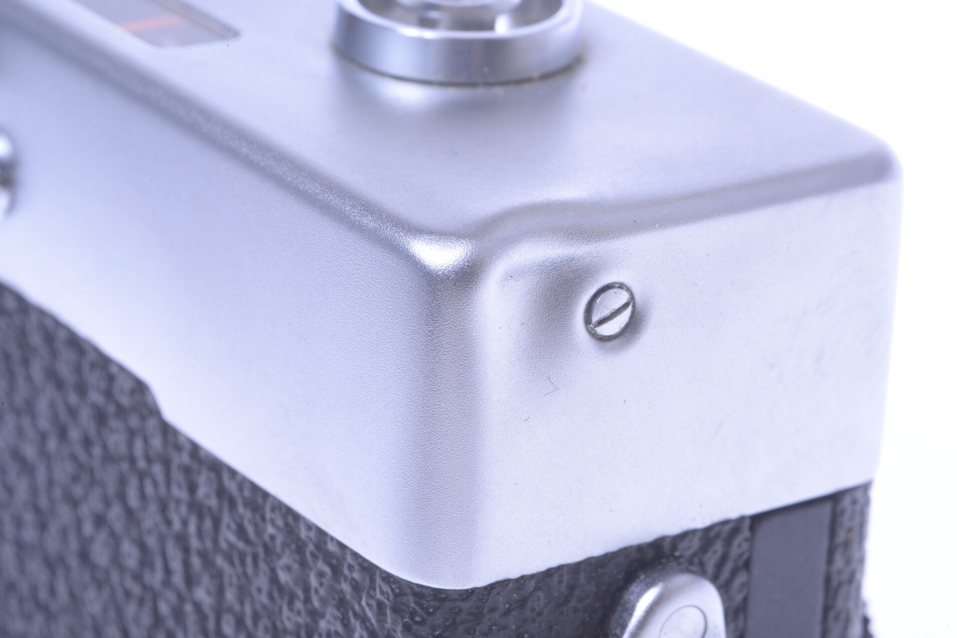 The camera shows, besides what I mentioned earlier, minor signs of prior use and is overall in very good condition. Shows no scuffs, few small scratches, no dings, no other dents, shows minor discoloring. No wear at the cover. Finder in pretty clean and bright in very good condition, shows a very slight cloudiness. Shows no dust. Film winds on smooth.