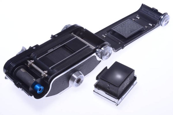 Overall the camera shows minor signs of prior use and is in very good condition. Shows really minor scuffs, no scratches, slight indentation at the top of the finder cover, no dings, no dents, shows minor paint rub off, cover shows no wear.