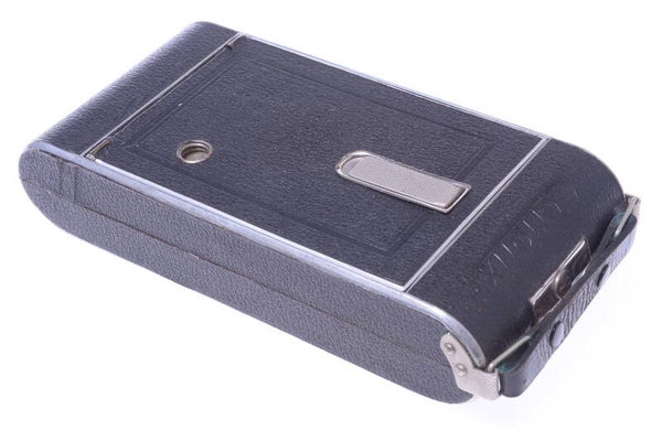 The camera shows minor signs of prior use and is overall in very good, minty condition. Shows minor scuffs, no scratches, no dings, no indentation, cover in very good condition and shows some wear. Minor paint rub off. Finder in very good and pretty bright condition, no haze and minor dust. Film winds on smooth. Bellows in very good and light leak free condition.