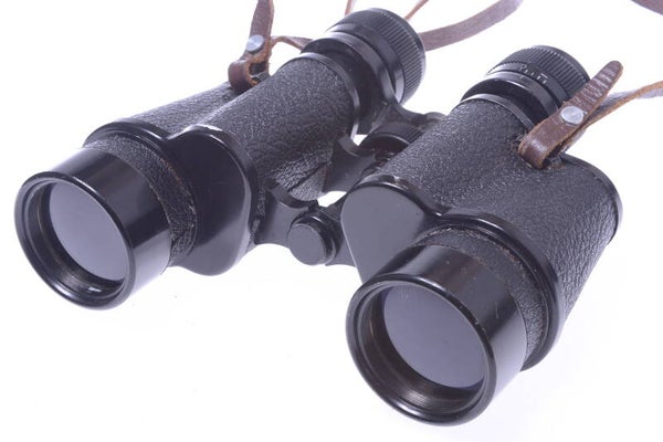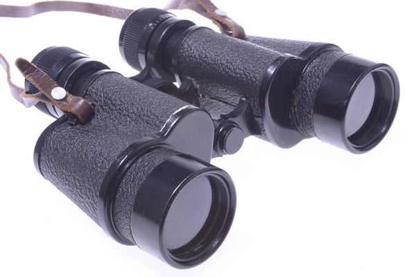 Binoculars shows moderate signs of prior use and is in good overall condition. Shows some scuffs, some scratches, some dings, some paint rub off. Comes with case and strap. Both leather.