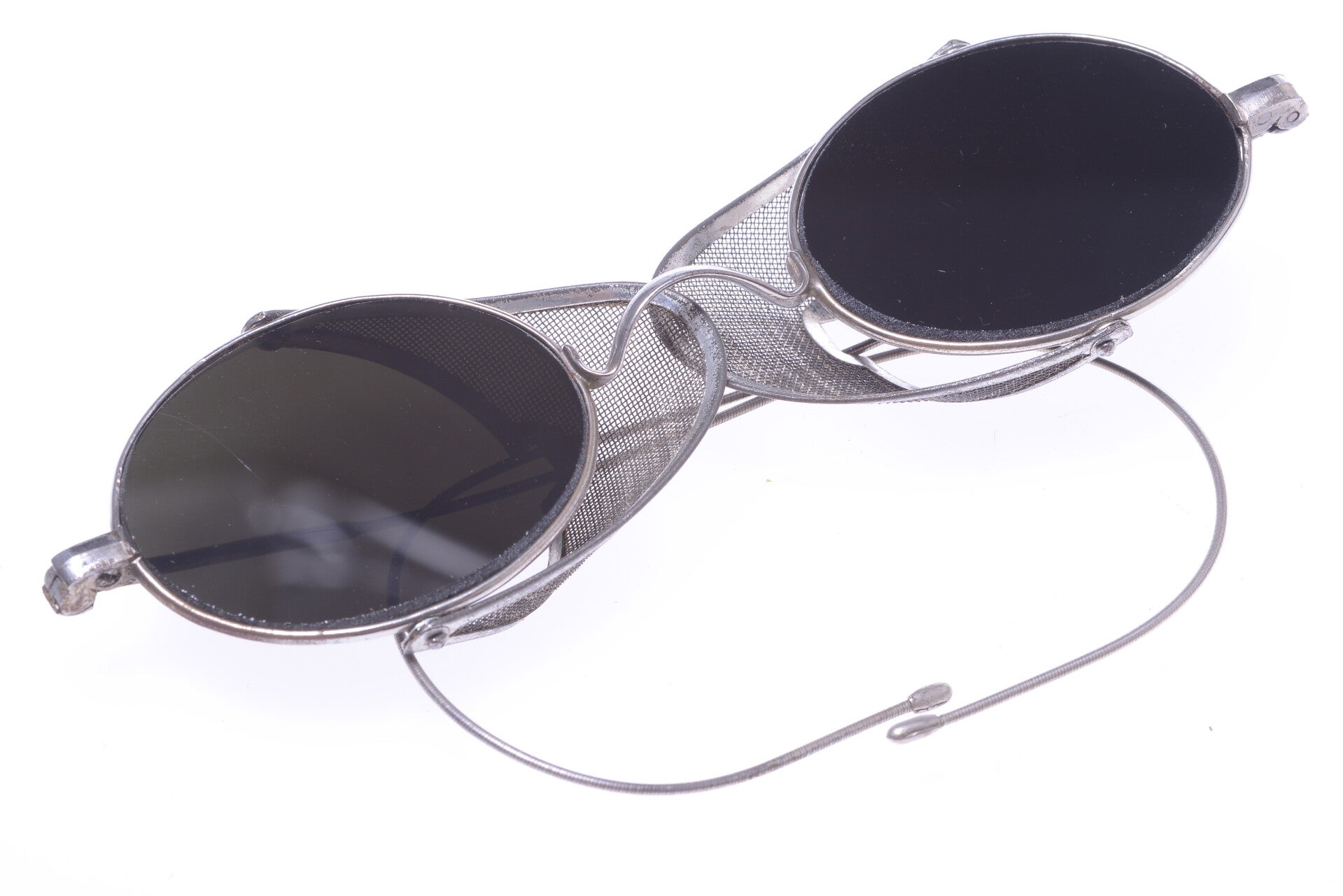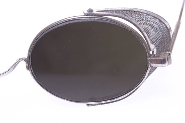 ANTIQUE LEFT BLACKED OUT SUN GLASSES MASH SIDE GUARDS INDUSTRIAL RAT ROD LOOK
