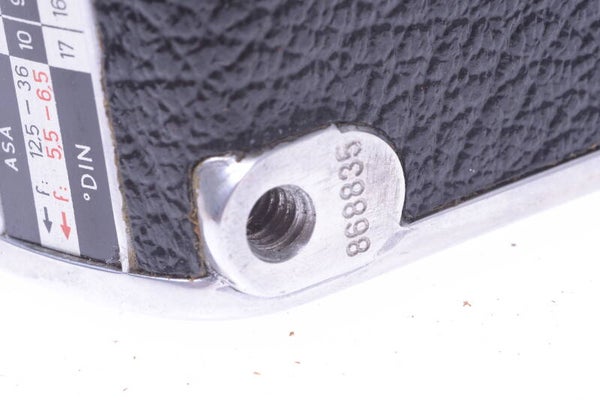 The camera show no signs of prior use and is in mint condition. Shows no scuffs, no scratches, no dings, no dents, shows no handling wear and no discoloring. Shows no paint rub off. Camera comes with 2 original film reels, leather case, original French manual/instructions and warrantee card. Very nice set.