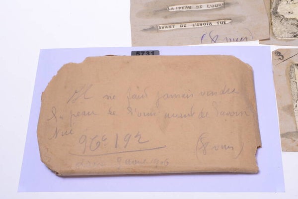 8 IMAGES c.1900 MAGIC LANTERN SCHOOL SLIDES 'NEVER SELL BEAR SKIN...' *FRENCH*