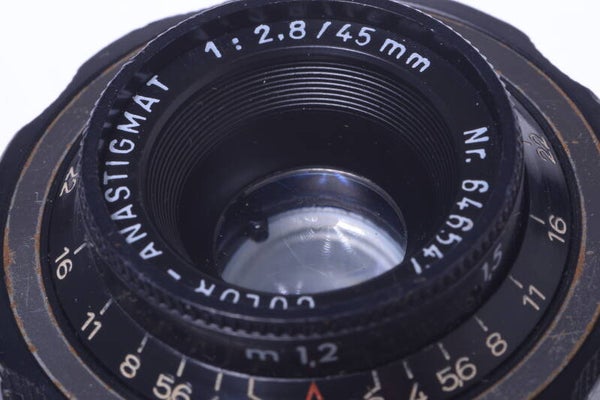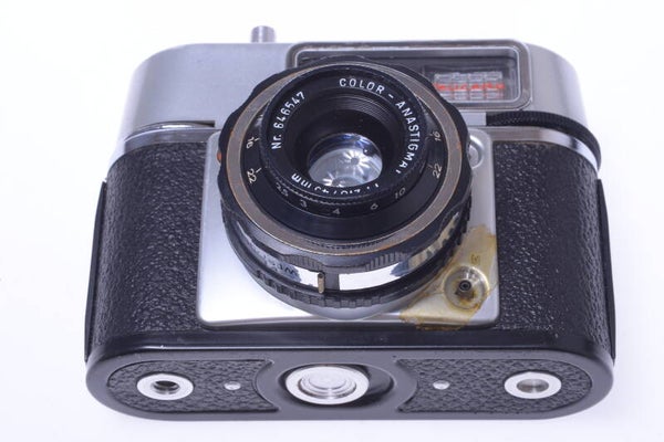 The lens elements are in good condition. No cleaning marks, no scratches, no haze, no fungus, no separation. Shows some dust particles inside. 1966 made camera.