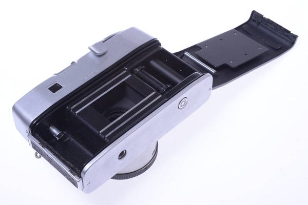 The camera shows some signs of prior use and is overall in very good condition. Shows minor scuffs, minor very superficial scratches, no dings, no dents, no handling wear. Mostly at the bottom. Shows no wear on the cover. Film winds on smooth.
