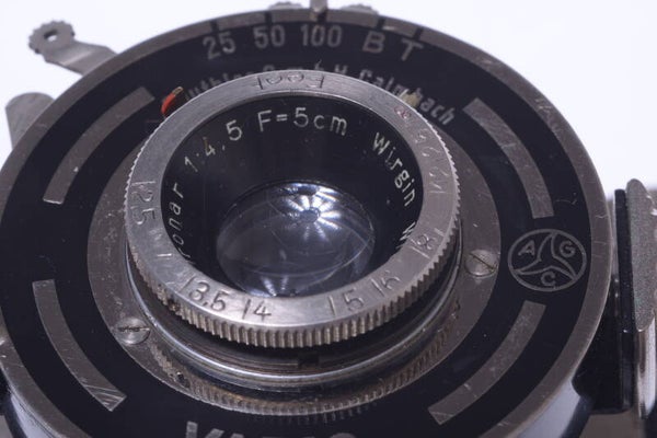 WIRGIN GEWIRETTE NICKEL CAMERA 3X4CM 127 ROLL FILM NICKEL IN FEET LENS C.1935