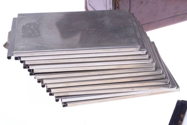 Bellows is light leak free. Lens is clean. Camera comes with 12 plate holders, ground glass and leather case. All original. Rare to find this complete.