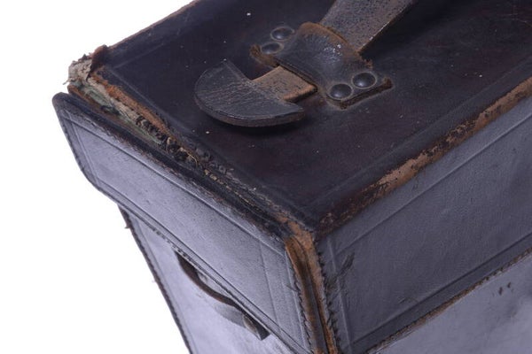 Case in good condition, shows moderate wear. Stitches loose at right hand side top only. Case overall in fairly good condition. Case is original antique and solid. Quality leather. Outside size is 120x240X220mm.