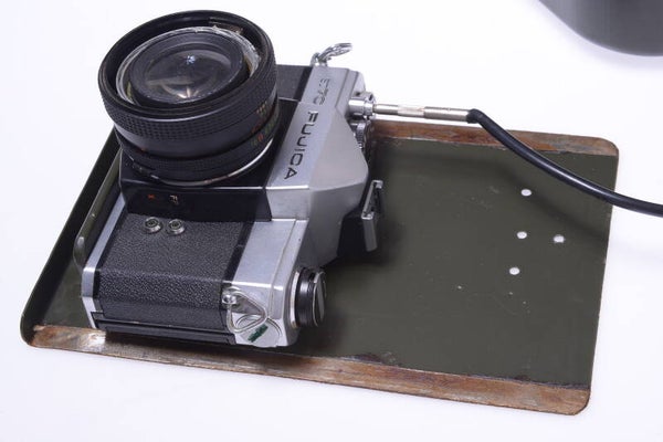 As it is designed for a 35mm camera, but one could only take one picture when using the camera installed. Or it is for a model with a motor inside the camera, like the Robot Royal*, but probably swapped out, because wind on lever is obstructed by the mounting plate.