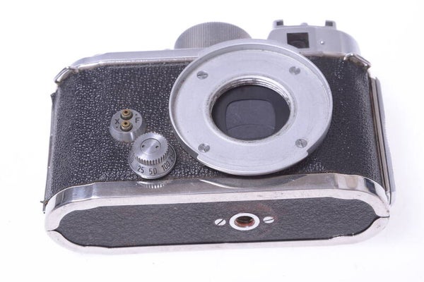 Shutter works, faster speeds are accurate, longer speeds hang. Remote release does not work. Overall the cameras shows some signs of prior use and is in good condition. Shows some scuffs, minor small scratches, shows a an indentation/deforming at the finder, no dings, no dents, shows some paint rub off. Finder works in both ways and is clean and bright.