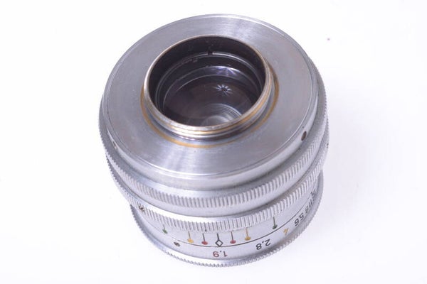The lens elements are in good condition. Shows cleaning marks/hairlike scratches, slight haze, no fungus, no separation. Shows minor dust particles inside. Focus moves smooth, aperture works and blades are clean.