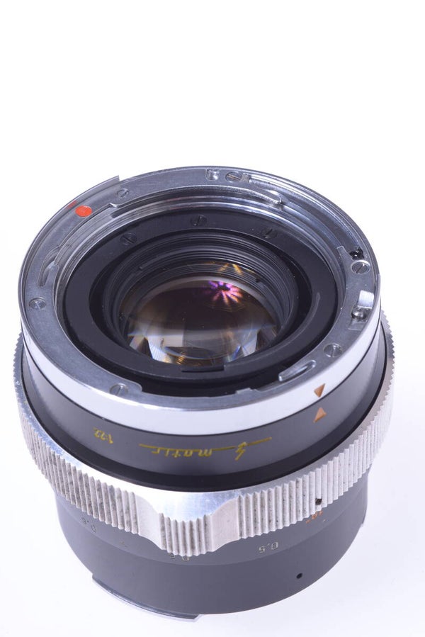 Lens shows some signs of prior use and is overall in very good condition. Shows some scuffing, minor tiny scratches, no dings, no indentations. The elements are in very good condition. No cleaning marks, no scratches, no haze, no fungus, no separation. Shows no dust particles inside. Aperture blades show no wear and are clean. Open and close very smooth. Focus turns very smooth. Lens comes with original front cap.