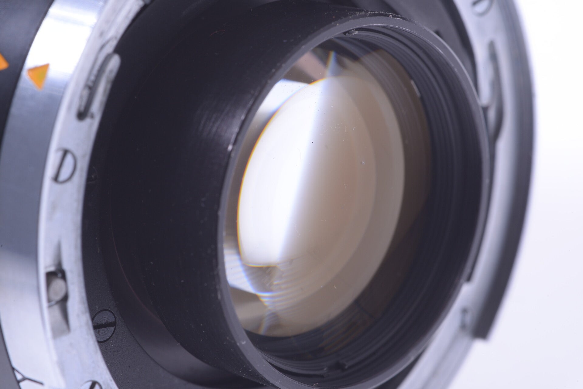 Lens shows some signs of prior use and is overall in good condition. Shows some small scuffs, no scratches, no dings, no indentations, minor paint rub off, some handling wear. The elements are in very good condition. No cleaning marks, no scratches, no haze, no fungus, no separation. Shows no dust particles inside. Aperture blades show no wear and are clean, open and close very smooth. Focus turns very smooth. Lens comes with original front cap. Very nice, scarce, high quality, fast standard flash magic type lens.