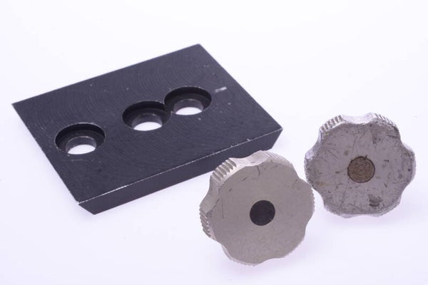 Shows some wear due to use. Shows some scratches and scuffs. See pictures. Comes with two connector screws with 3/8th diameter and 23 and 20 thread length. The plate is 76x64mm and 7mm thick.