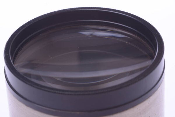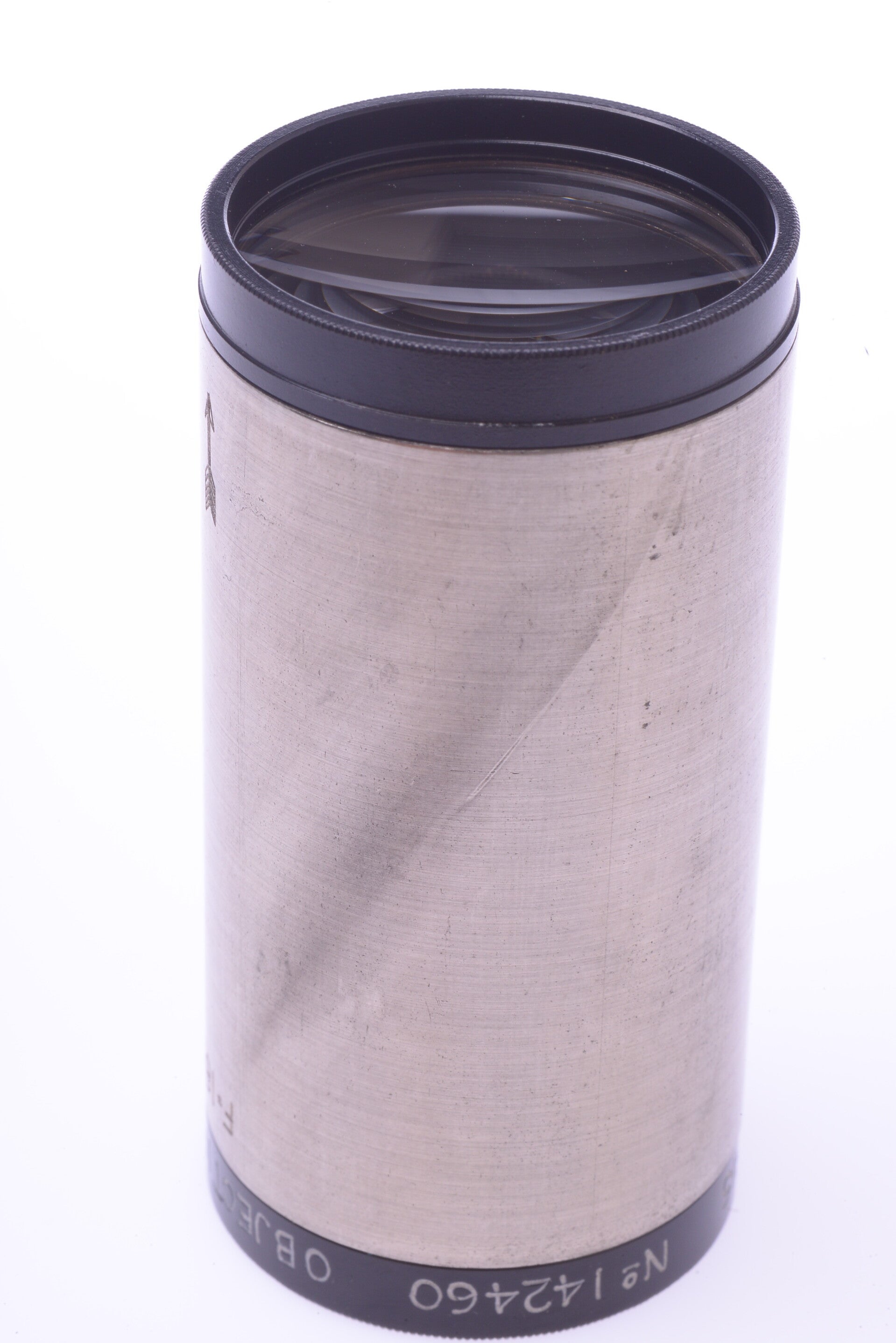 NOTE THE LENS HAS NO APERTURE. NICKEL PLATED BRASS BARREL, BLACK PAINTED FRONT AND REAR FILTER RETAINING RINGS.