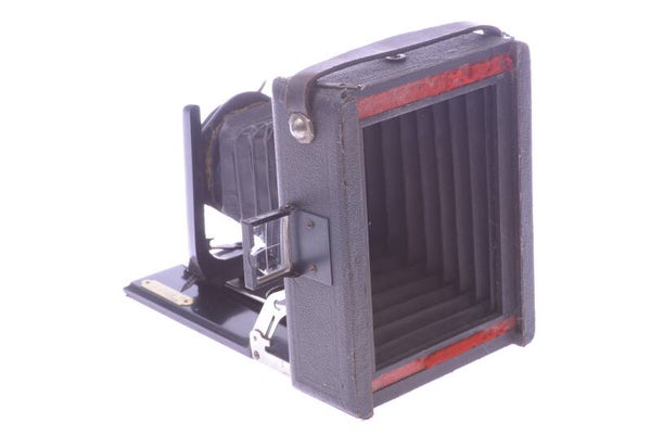 Bellows is light leak free. Movements work smooth. Comes without viewing hood and ground glass back. Handle is in good condition.