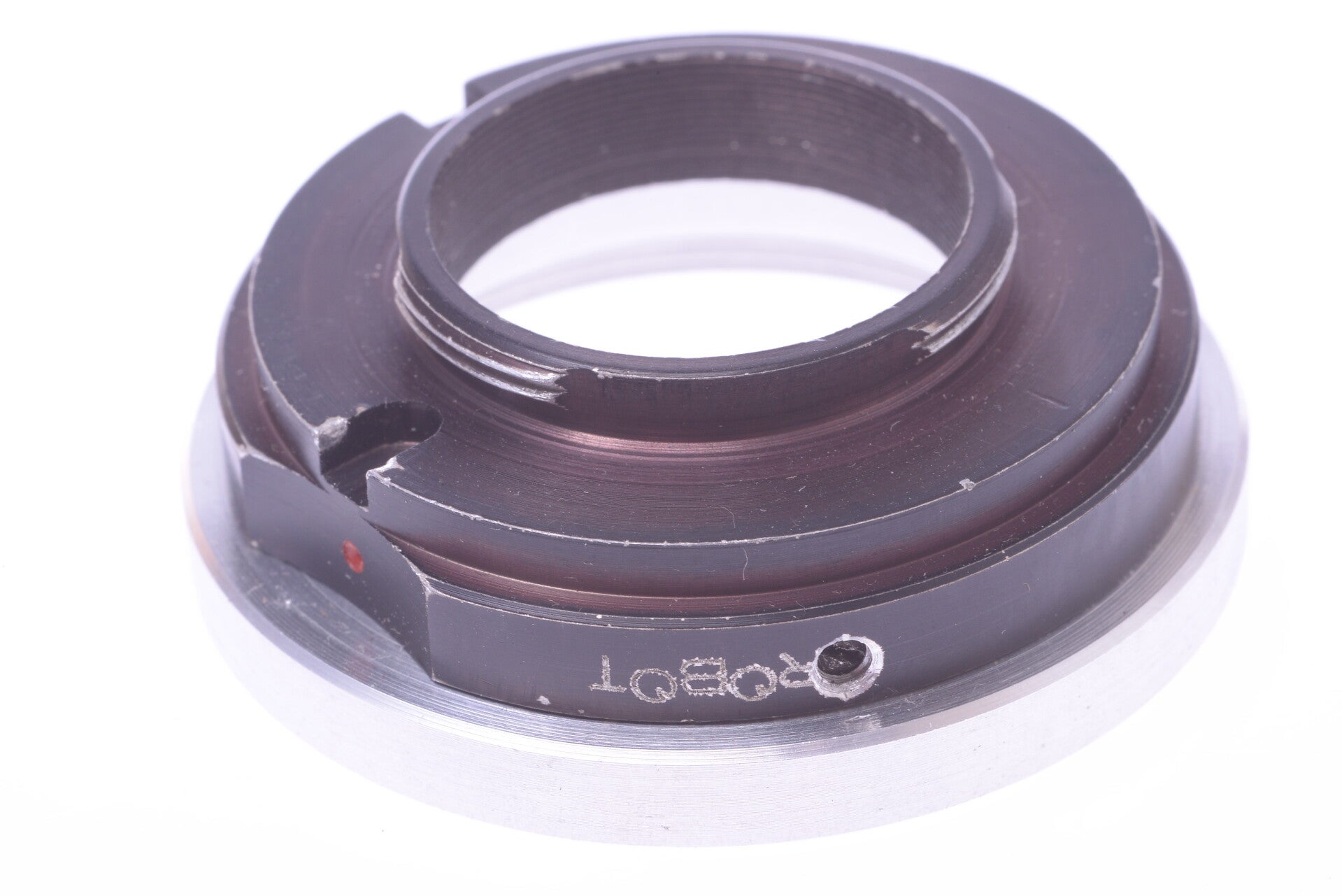 The adapter shows some signs of prior use and is in good condition. Shows some scuffs, few small scratches, no dings, no dents, shows minor paint rub off. Both threads, 30mm & 42mm, are in good condition.