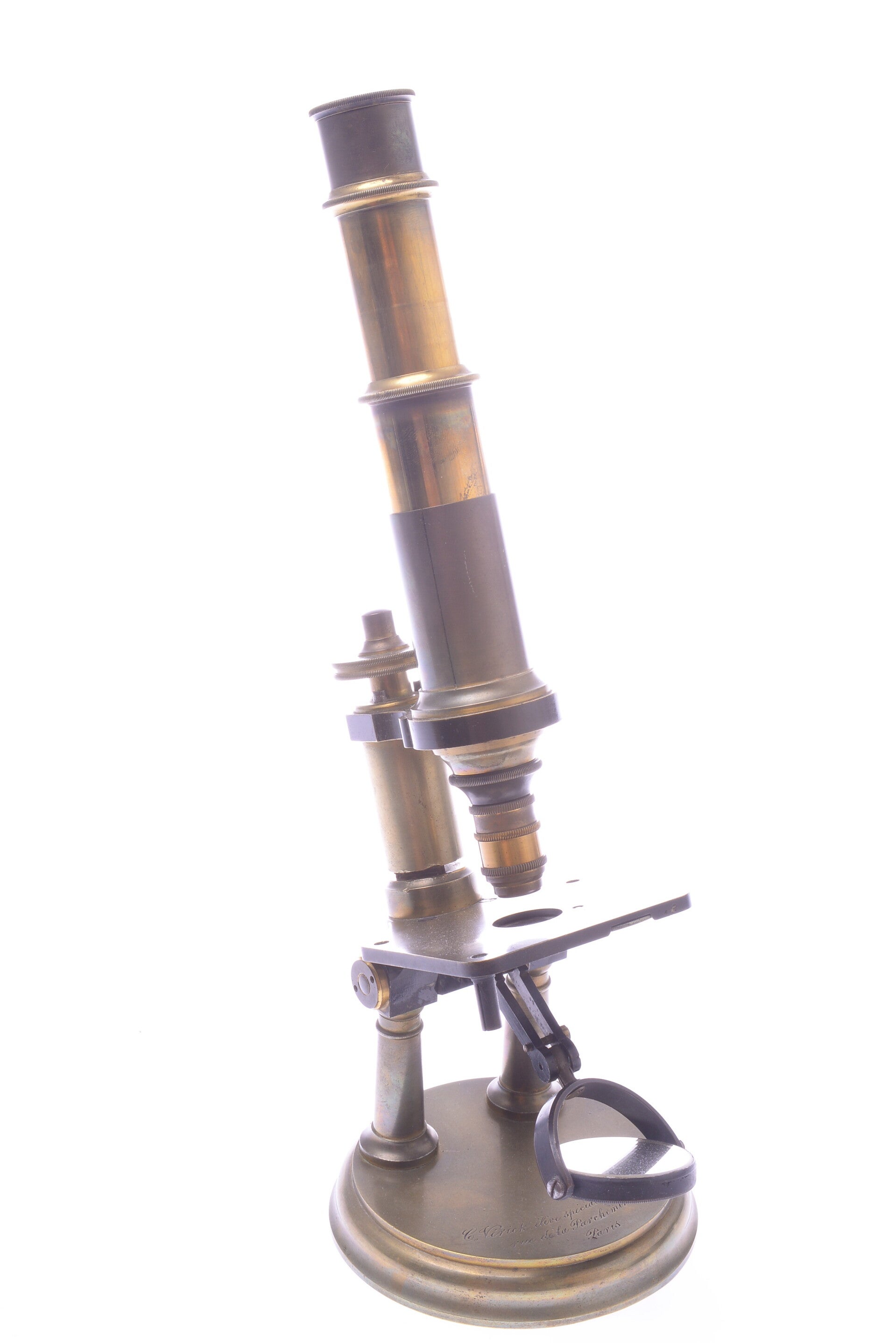C. VERICK MICROSCOPE ANTIQUE DOUBLE PILLAR C.1870 *WORKS* ORIG. OCULAR & LENS