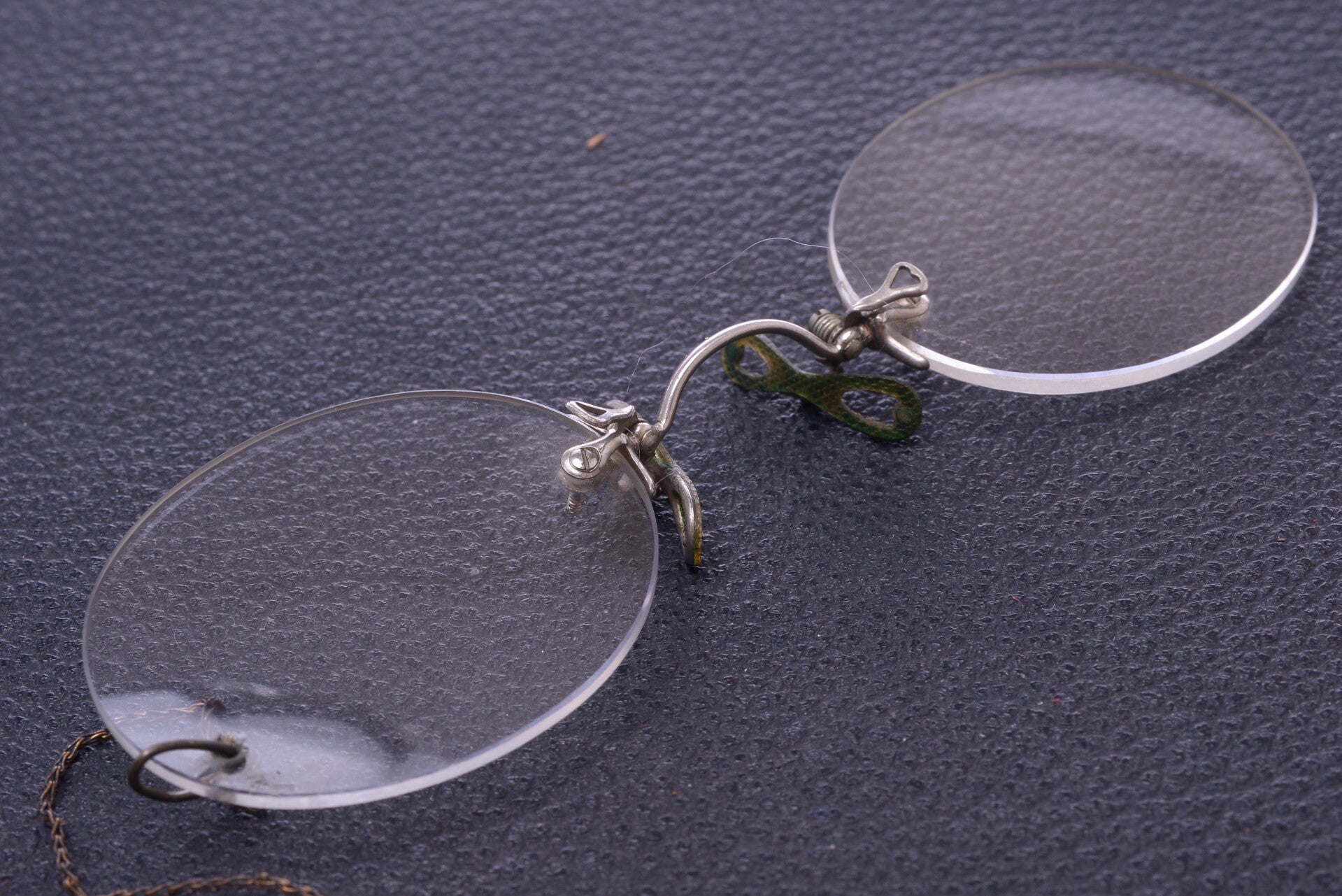 ANTIQUE PINCH, PINCE NEZ READING NOSE GLASSES OVAL FRAME +/- -2 DIOPTER 5698