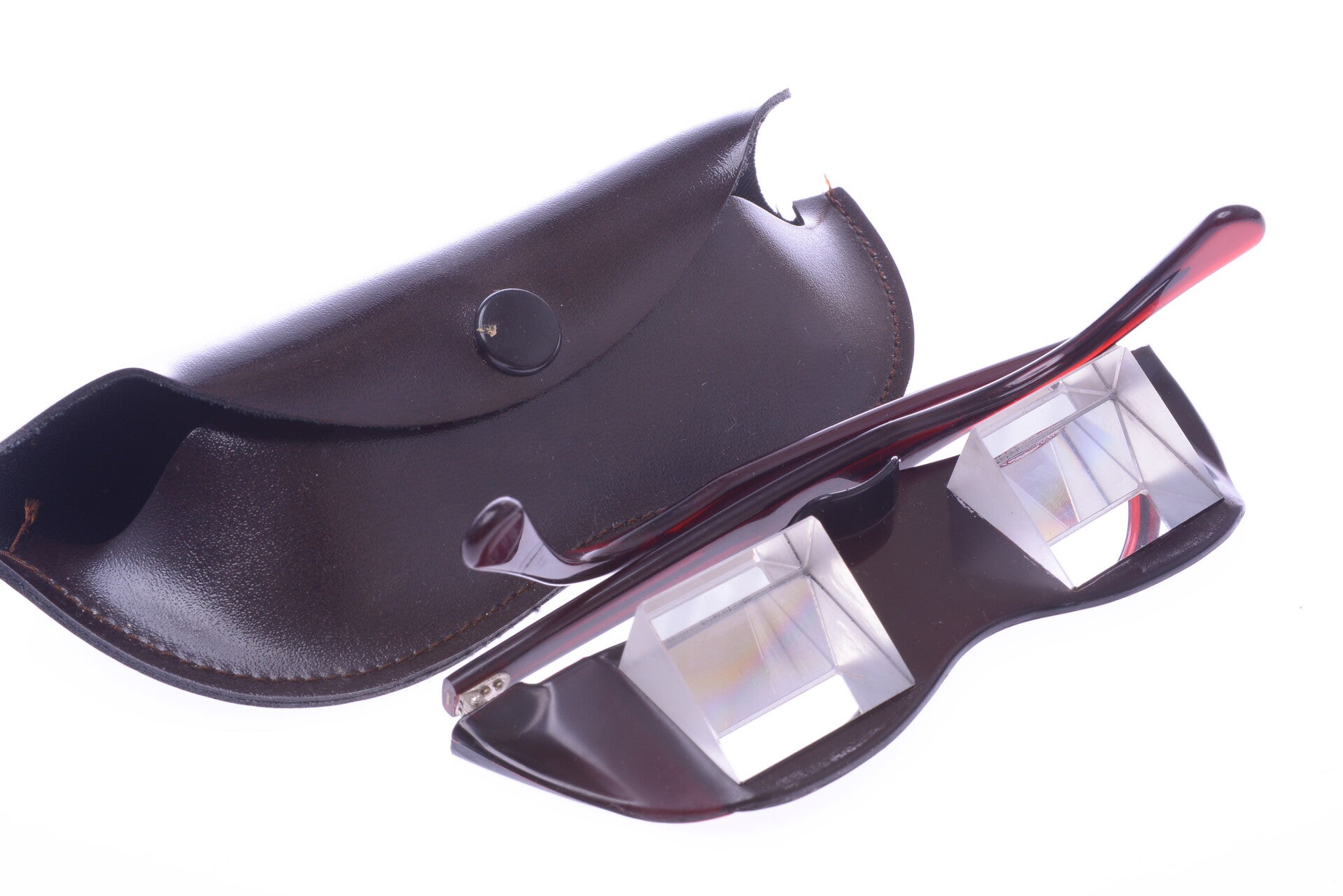 VINTAGE GLASSES, SPECTACLES BAKELITE DOWNWARD VIEW PRISMS *UNUSED* W/ CASE 165