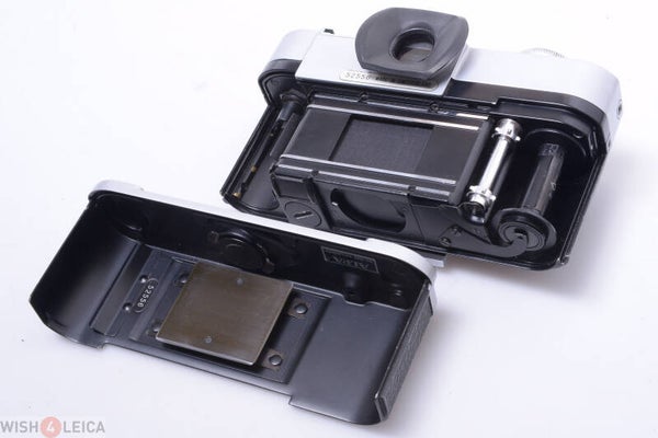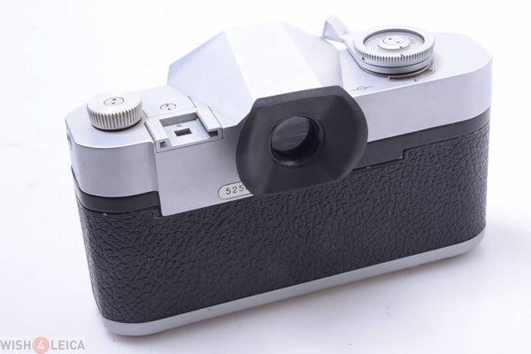Camera shows some signs of prior use and is overall in very good condition. Shows some tiny scuffs, few tiny scratches, no dings, no dents, some paint rub off at the sides. No wear at the cover. Ground glass, mirror in very good condition. Shutter works perfectly at all speeds, also longer speeds are accurate! Shutter blinds in light leak free condition. Film winds on very smoothly. Camera comes with strap, battery adapter, eye mussle & original strap lugs!